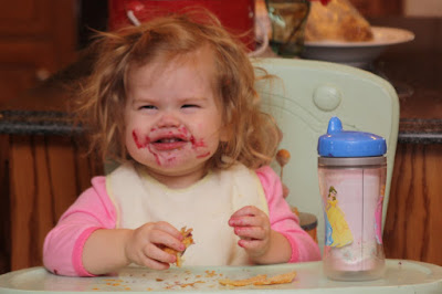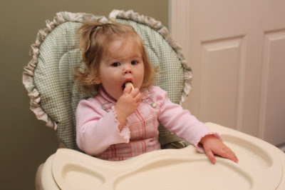 Her appetite was really down, so she didn't eat much for about a week. But, oh my, she has made up for lost time! One day she spent just about the whole day either in her high chair or asking to get in it!